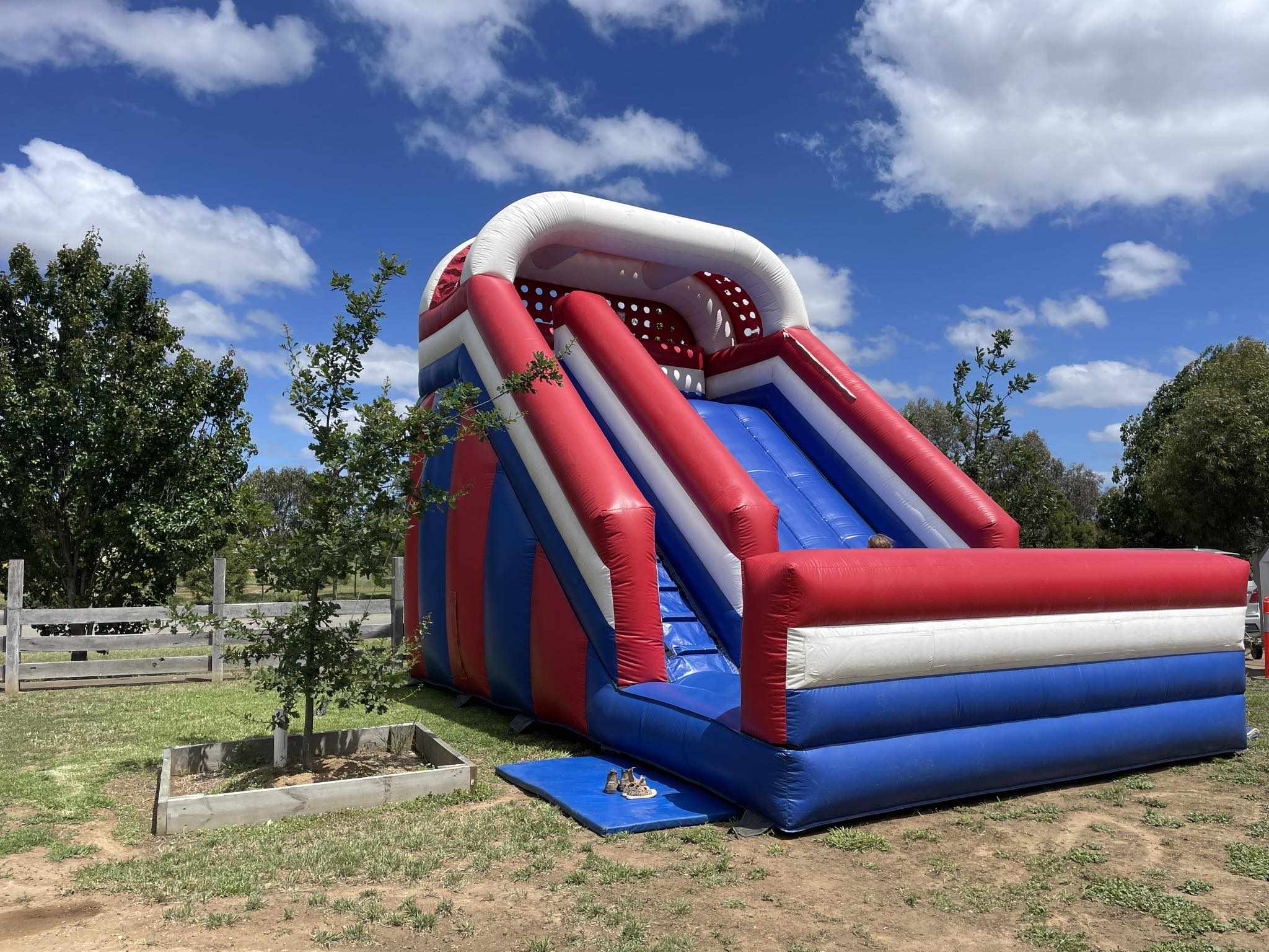 Area required allows for safety mats, air blowers for inflation and castle pegs or sandbags